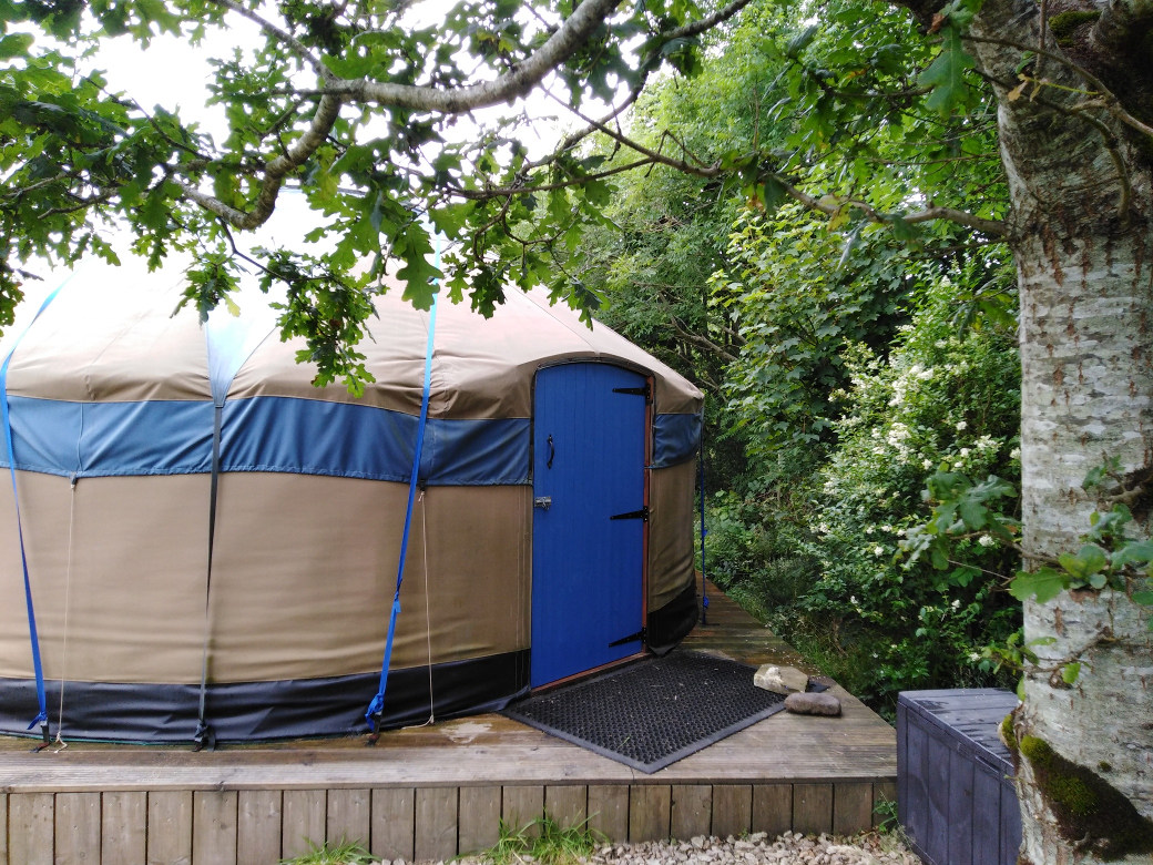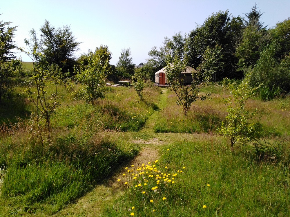 We have two 20ft diameter Scottish made Yurts that can sleep up to 6 people and one 18ft diameter Yurt that can sleep up to 4 people. They are set around an orchard and meadow and are available for hire from February to the end of November.