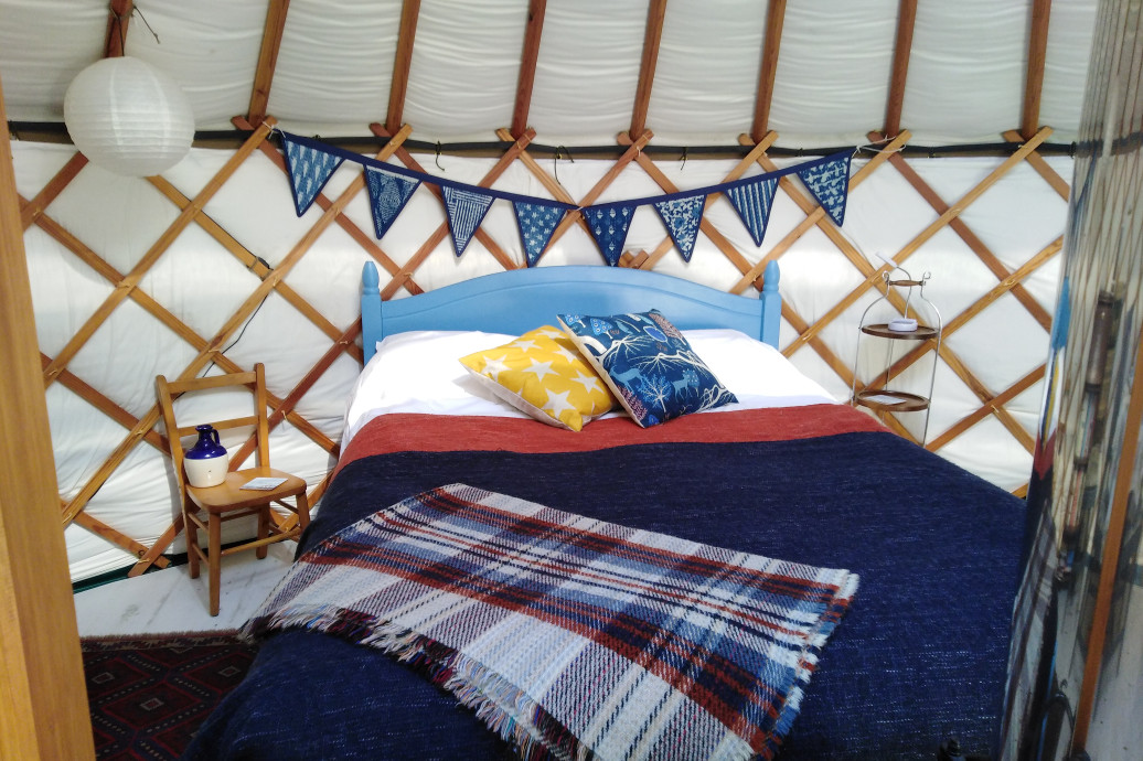 - Luxury double bed plus proper furniture including two futon sofa-beds for other guests (double futons in the larger yurts and singles in the smaller yurt)